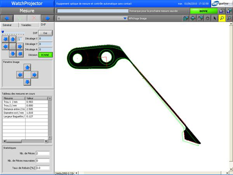 - Superposition d'un DXF pour un contrôle visuel. Le dessin DXF se positionne automatique sur la pièce.