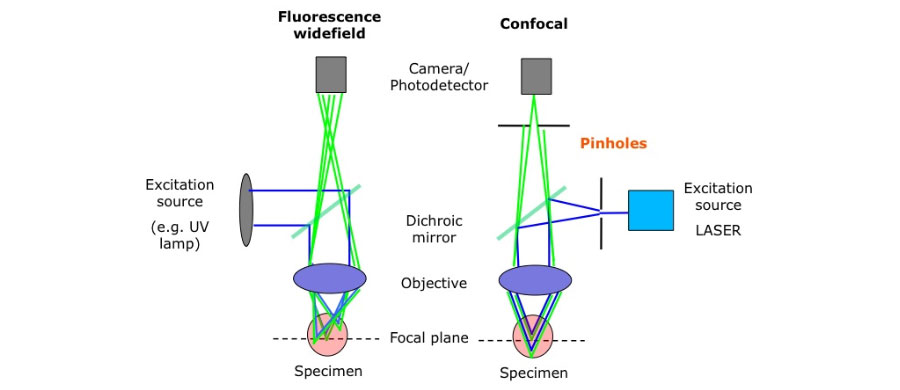Example of images in confocal vs. wide fields