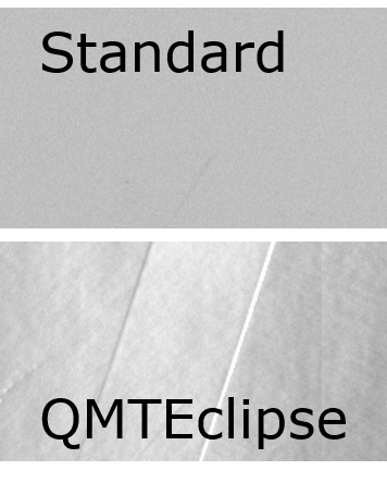 The challenge is to create lighting that amplifies the defects of transparent or translucent samples. These defects are on the surface or inside the sample to be analyzed. In this case, standard backlight illumination does not provide sufficient contrast to detect defects, for example air bubbles or micro-scratches. The QMTEclipse enhanced contrast illumination makes them detectable.