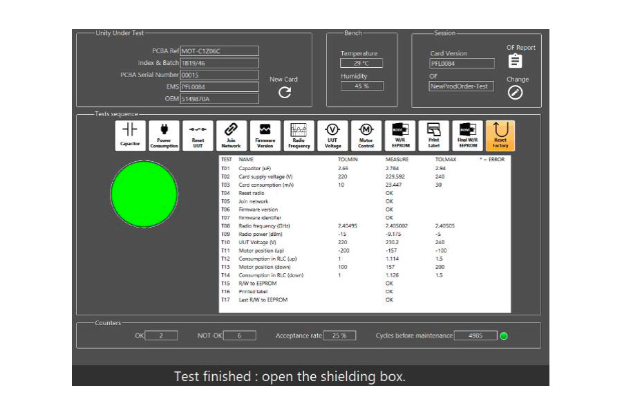 In order to guarantee optimal quality of its products to its customers, Profalux trusted qmt for the production of end-of-production test benches for controlled roller shutter motor boards using the ZigBee communication protocol.