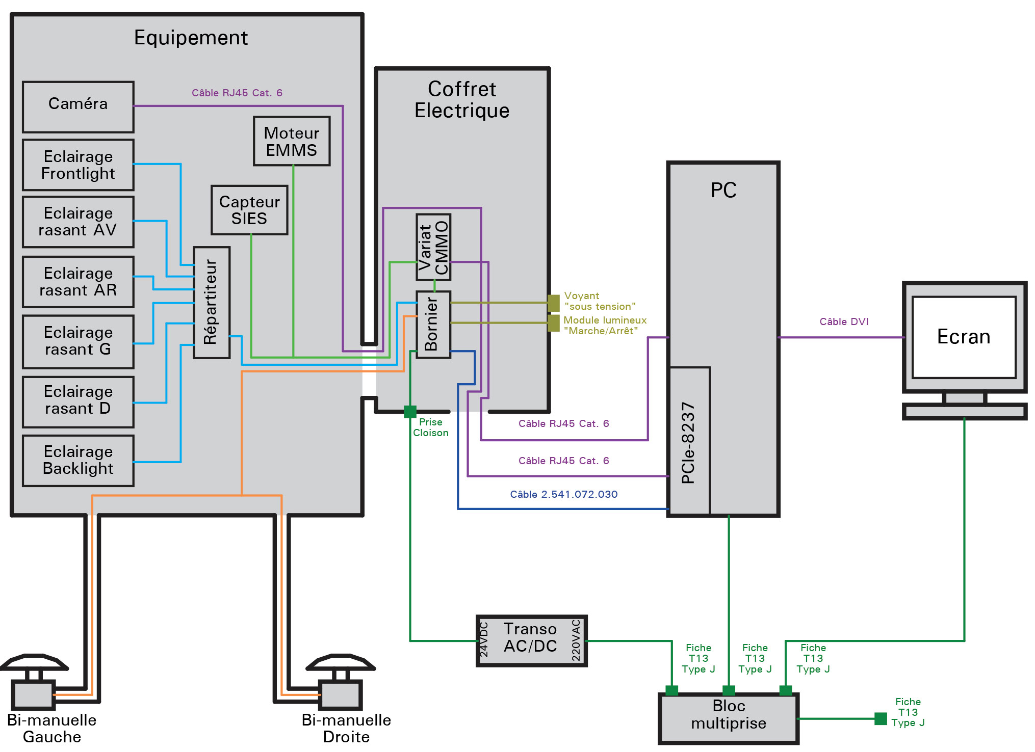 Ein maßgeschneidertes Gerät wurde vom qmt- Team entwickelt, hergestellt, montiert und perfektioniert. Es ermöglicht die Steuerung der motorisierten Beladung des Produkts und die Steuerung der Steuerungsbedingungen. Es ist besonders wichtig, die optischen, Kamera- und Lichtverhältnisse zu beherrschen.