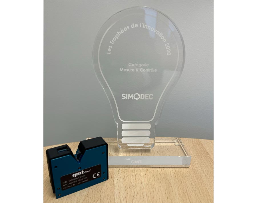 En catégorie Mesure et Contrôle, le trophée de l’innovation du SIMODEC 2020 a été attribué à la société qmt pour la présentation de son produit qmtprojector-100 avec le posage qmtvline.