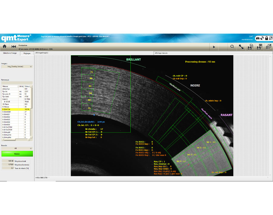 La solution a été réalisée avec le logiciel qmtmesure-expert, il est flexible et ergonomique pour s’adapter précisément aux besoins du client. Pour cette application qmt a créé des nouveaux outils de mesure de dérives de texture, d’analyse de rayures, de detection d’impact et de parallélisation de processus.