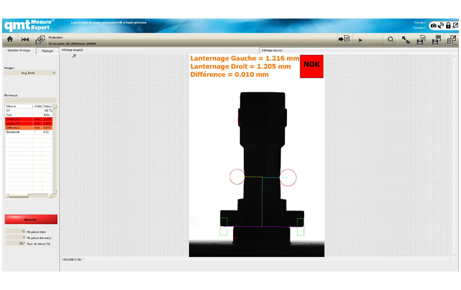 qmt a réalisé un appareil sur mesure permettant le contrôle dimensionnel des chaussées, en particulier la hauteur des bossages (hauteur de lanternage). Pour mesurer toutes les caractéristiques, la pièce est mise en rotation avec une acquisition d'images synchronisée.