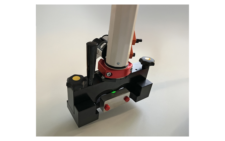 Conception et réalisation d’un système optique s’intégrant parfaitement au produit à tester. Il est placé manuellement par l’opérateur grâce à une pièce de guidage réalisée par qmt. Sa compacité offre un angle de vue spécifique pour la mesure d’écart de lobes en dynamique. Ce système opto-mécanique est composé d’un éclairage coaxial, d’une caméra et optique haute résolution, de composants mécaniques personnalisés