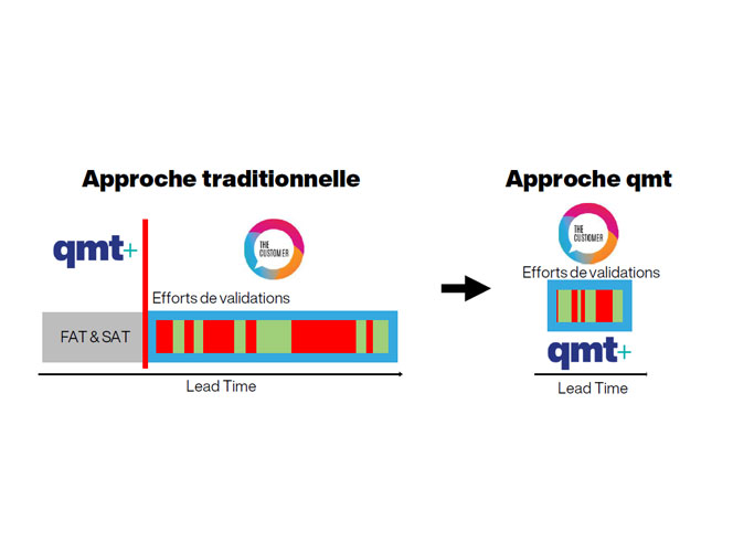 qmt propose un 2ème mode de qualification avec une parallélisation des efforts de qmt et du client pour réduire le délai de mise en œuvre. qmt peut aussi prendre la responsabilité de cette qualification avec une ressource détachée dans les locaux du client.